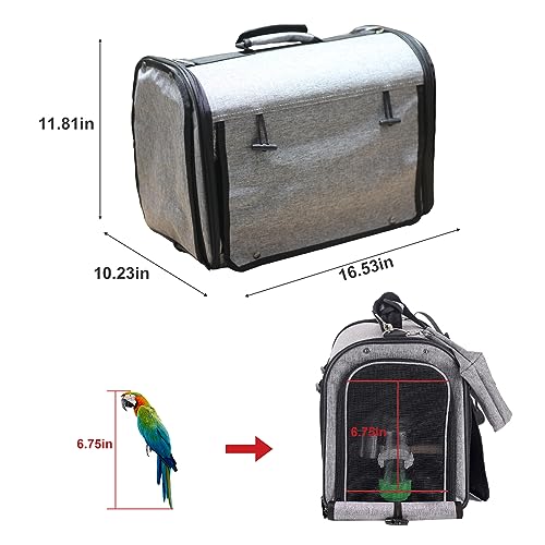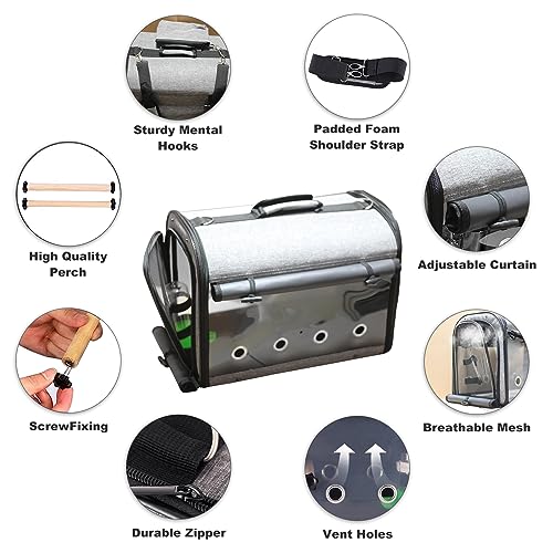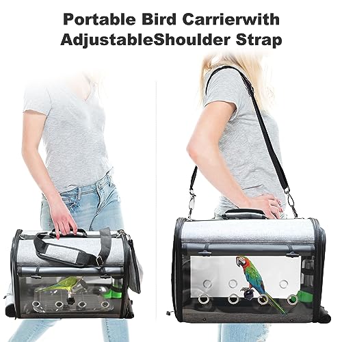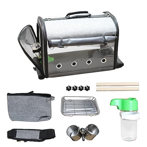 Bird Carrier,Birds Travel Bag Portable Backpack,Parrot Travel Carrying,Transparent Breathable,with Wooden Perch Stand and Tray Feeder, Lightweight with Food Cups Bowl Water Bottle for Cockatoo