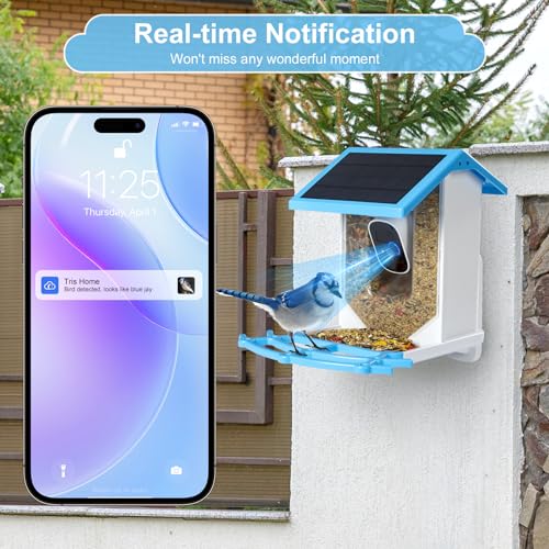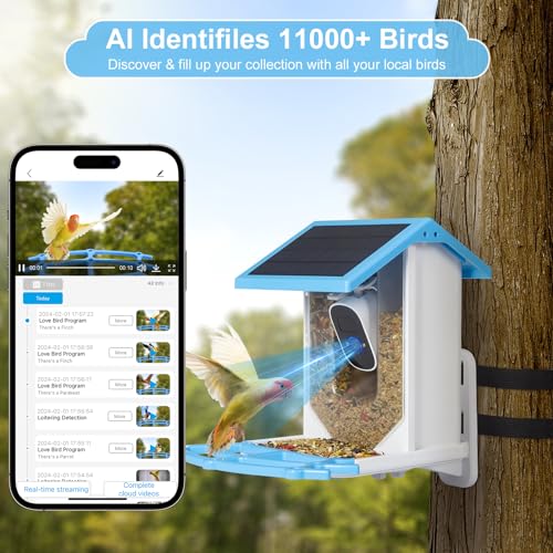 Smart Bird Feeder with Camera Solar Powered, AI Camera for Beautiful Close-up Shots and Identify Bird Species, Auto Capture Bird Videos, Birdwatching Gift for Bird Lover