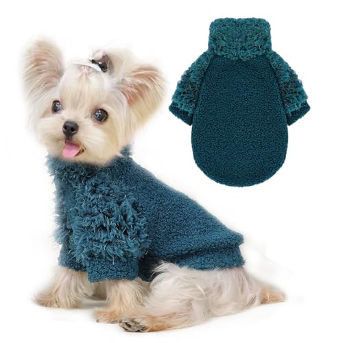 Dog Sweater Winter Sweaters for Small Dogs Girl Boy Teddy Fleece Puppy Clothes Outfit Cold Weather Dog Coat Warm Pet T-Shirt for Chihuahua Yorkie Shih Tzu Teacup Cat Apparel Clothing (X-Small, Green)