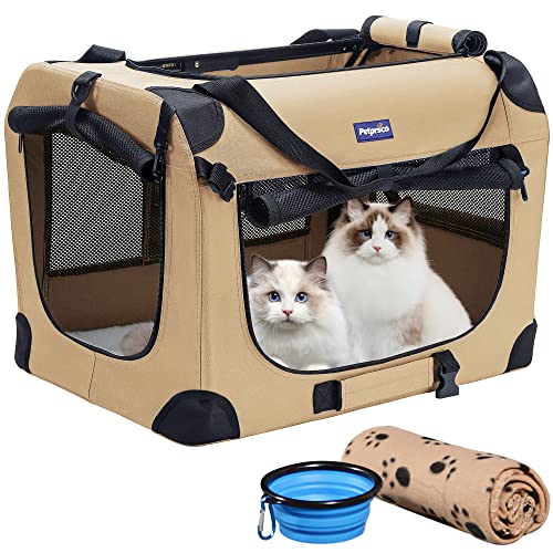Portable Collapsible Dog Crate, Travel Dog Crate 24x17x17 with Soft Warm Blanket and Foldable Bowl for Large Cats & Small Dogs Indoor and Outdoor