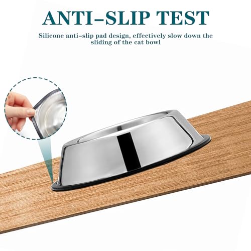 2Packs Cat-Bowls Cat Food Bowl – 5.3 Inch Non-Slip Stainless Steel Cat Bowls for Food and Water 13 Oz Pet Feeding Bowl Suitable for Cats Small Dog with Removable Rubber Base
