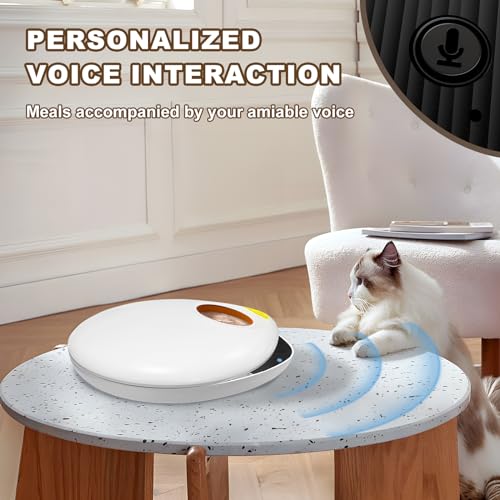 【Smart Feeding with Personalized Voice】Create a comforting routine by recording a warm message that played before each meal, enjoy up to 5 personalized meals for your furry friend. Press ‘FEED’ or reach the scheduled time for a seamless rotation of meals accompanied by your voice, ensuring a delightful and regulated dining experience for your pet.