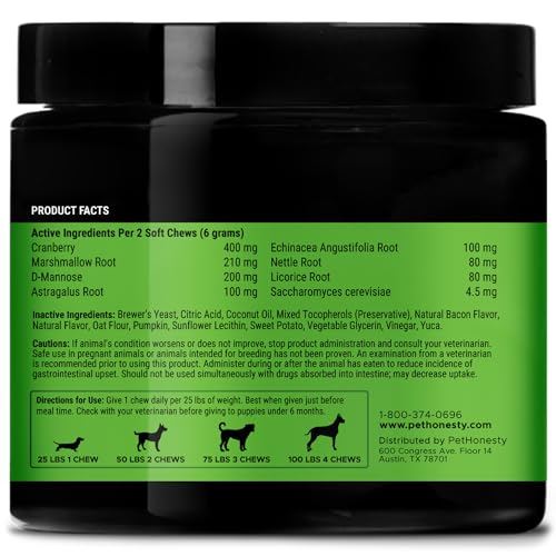 Pet Honesty Cranberry Bladder Health for Dogs – Contains Active Ingredients – Cranberry & D-Mannose to Help Support Dog Urinary Tract Health, Dog Bladder Support, & Kidney Support for Dogs (Bacon)